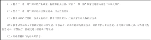 技术成果征集条件。截图自中国21世纪议程管理中心官网