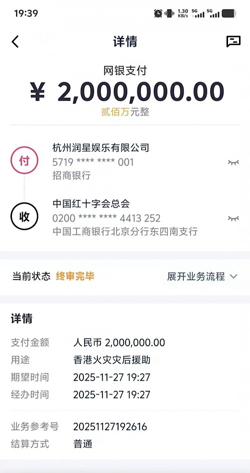 11月26日下午,香港新界大埔宏福苑多栋住宅楼发生火灾,造成重大人员伤亡和财产损失,令人痛心。为响应紧急需求,协助受灾同胞渡过难关,润星集团11月27日宣布,通过中国红十字会总会捐赠200万元人民币,用于支持受灾地区的紧急救援、物资采购、灾民安置及心理辅导等专项工作。