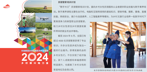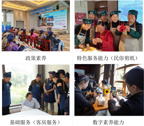 ▲数字木兰普惠班:根据《民宿管家国家职业标准(2024 年版)》要求,结合消费群体对民宿服务的需求,开展政策素养、基础服务、特色服务和数字素养四项能力的实操性培训。