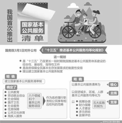 3月1日,国务院印发的《“十三五”推进基本公共服务均等化规划》正式对外公布。《规划》提出,到2020年,基本公共服务体系更加完善,体制机制更加健全,在学有所教、劳有所得、病有所医、老有所养、住有所居等方面持续取得新进展,基本公共服务均等化总体实现。