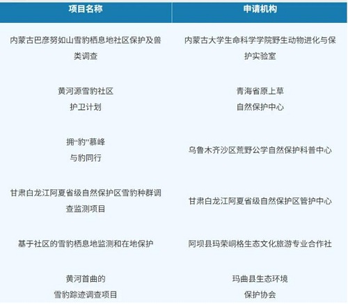 公示丨雪豹保护小额赠款二期入选名单