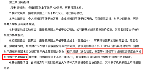 《中南财经政法大学接受捐赠冠名管理办法 (试行)》规定