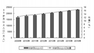 在老龄服务方面,《公报》显示,截至2016年底,全国60岁及以上老年人口23086万人,占总人口的16.7%,其中65岁及以上人口15003万人,占总人口的10.8%。