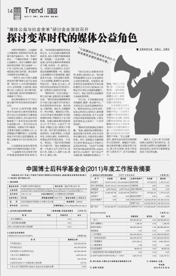 中国博士后科学基金会(2011)年度工作报告摘要