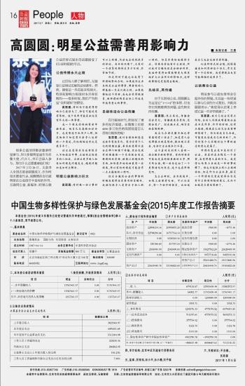 中国生物多样性保护与绿色发展基金会(2015)年度工作报告摘要