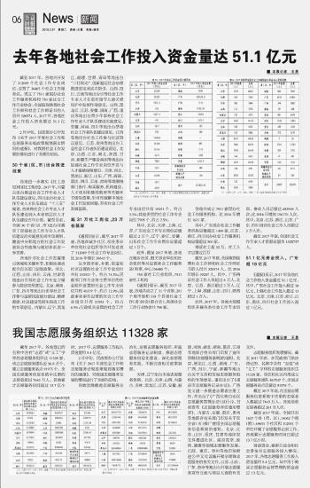 去年各地社会工作投入资金量达51.1亿元