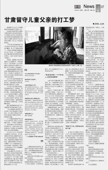 甘肃留守儿童父亲的打工梦