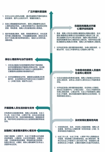 ■ 本报记者 王勇 近日,为做好新冠肺炎患者、隔离人员及家属心理疏导和社会工作服务,促进患者身体与心理同步康复,维护隔离人员、家属心理健康,营造相互关怀的社会环境,国家卫生健康委、民政部制定了《新冠肺炎患者、隔离人员及家属心理疏导和社会工作服务方案》。 《方案》明确了新冠肺炎患者、隔离人员及家属心理疏导和社会工作服务工作的目标: 第一,开展新冠肺炎防控宣传和健康教育,提升群众防控知识水平,增强防护技能,减轻因认知不足所致的恐惧,减少、消除对患者、隔离人员及家属的歧视与排斥等行为。 第二,以互联网络平台为基础,推进互联网+社会心理服务,为患者、隔离人员及家属提供线上心理支持和服务,增强自我心理调适能力,帮助有需求的服务对象渡过困难期,恢复社会功能。 第三,以社区为主要阵地,建立心理疏导和社会工作服务网络,提供情绪引导、心理辅导、资源链接、困难纾解、社会支持网络修复等服务,改善社区环境,恢复社区秩序,推动基层社区治理,营造健康向上的社区氛围,促进社会稳定。 组建专业队伍 《方案》明确提出,受疫情影响较大的地方,各区县防疫指挥部要成立新冠肺炎患者、隔离人员及家属心理疏导和社会工作服务领导小组,卫生健康、民政等部门分工负责,各街道(乡镇)明确1名领导负责辖区心理疏导和社会工作,指定专人统筹协调心理疏导和社会工作服务。 各街道(乡镇)根据受疫情影响情况,在社区设置心理咨询室或社会工作室,配备1-2名专职或兼职心理咨询师或社会工作者;在社区卫生服务中心(乡镇卫生院)设置心理专干;在街道(乡镇)设置社会工作站,配备1-2名专职或兼职社会工作者,负责辖区群众社会心理健康工作。 有条件的,可建立由社区工作人员、社会工作者、志愿者、心理咨询师、心理治疗师、精神科医师等组成的社区心理疏导和社会工作服务队,采取社区、社会工作者、社区志愿者、社区社会组织、社区公益 资源、心理服务专业力量联动服务方式开展工作。 《方案》要求建立对口指导机制。各地按照已有精神卫生服务技术指导机制,由各社区卫生服务中心(乡镇卫生院)对口联系的上级精神卫生医疗机构派精神科医师、心理治疗师,提供技术指导和帮助。 要提供线下和转介服务。根据出院患者及家属、隔离人员家属需求,社区工作人员、心理专干可联系社会工作者、心理咨询师、心理治疗师进社区提供心理疏导和社会工作服务。发现出院患者及家属、隔离人员家属可能有精神卫生问题时,心理咨询师、精神卫生社会工作者等应当向对口精神卫生医疗机构转介,由精神科医生提供精神医学诊疗服务。 要开展人员培训和督导。上级精神卫生医疗机构和社会工作行业组织应当派具备心理援助技术能力的精神科医师、心理治疗师、社会工作师对社区工作人员、志愿者、心理专干等人员开展精神卫生知识培训,分别对街道和社区工作提供技术指导和专业督导。 《方案》明确要求在提供心理疏导和社会工作服务时要遵循以下原则: 一是统一领导、团队协作、分工负责。所有工作须在本专项工作领导小组的统一领导下组织进行,各类人员实行团队协作,明确成员分工与配合。未经允许个人不得擅自开展任何形式的心理疏导和社会工作服务活动。 二是严守心理卫生和社会工作服务伦理原则、保密要求。对患者、隔离人员及家属的个人和家庭隐私包括个人信息、生活轨迹、家庭情况等严格保密;设专人负责服务对象档案管理并签署保密协定。 三是分类分级。结合各社区实际状况,采用分类、分级处理。对不同社区、不同年龄段、不同人群、具有不同需求的服务对象进行分类干预。 七项具体措施 《方案》提出了开展心理疏导和社会工作服务的七项具体措施: 一是广泛开展科普宣教。针对公众关心的热点话题,通过权威媒体开展新冠肺炎防控宣传,提升公众知识水平,增强防控能力。发放心理健康服务宣传材料,提供心理健康专业知识、心理热线电话号码、心理支持网络平台二维码等支持性资源,帮助患者、隔离人员及家属自我心理调适。组织专家通过媒体、视频、网络授课等形式,对社区居民开展心理健康讲座,介绍温馨家庭氛围、团结社区关系对个体渡过难关的帮助和意义,鼓励大众互帮互助,消除歧视。 二是在医院和隔离点开展心理评估和疏导。患者、隔离人员在定点医院/康复驿站/隔离点期间,定点医院/康复驿站/隔离点主动向其推荐心理自评工具(如,湖北省精神卫生中心牵头研发的“强肺心理支持系统”),鼓励有需要者寻求心理疏导及心理支持。有条件的定点医院/康复驿站/隔离点对患者、隔离人员开展集体心理疏导。对评估后发现心理问题风险较高的,协调心理咨询师、心理治疗师、社会工作者等专业人员提供心理干预。 三是保证心理疏导与治疗连续性。对在定点医院已经使用精神科药物干预的患者,如评估需要继续给予精神科药物治疗的,定点医院应当将患者相关治疗信息记入出院信息单中,交康复驿站或隔离点继续维持治疗。对评估需要继续治疗的,康复驿站或隔离点在其离开时,应当将相关治疗信息交社区卫生服务中心(乡镇卫生院)继续予以治疗。 四是为有需求的居家人员提供社会和心理支持。社区应当鼓励出院患者及家属、隔离人员家属主动寻求社会