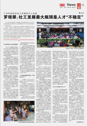 罗观翠:社工发展最大瓶颈是人才“不稳定”