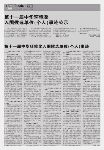 第十一届中华环境奖入围候选单位(个人)事迹