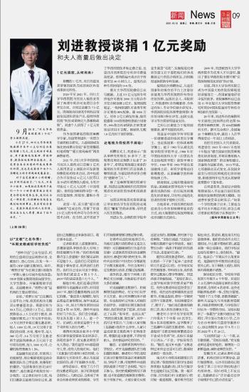 刘进教授谈捐1亿元奖励