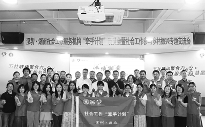 5月11日,深圳市“十四五”期间深圳·湖南社会工作“牵手计划”启动仪式在深圳市点亮心光社会工作服务中心会议室举行,同时新一期深圳·湖南社会工作“牵手计划”正式开启。深圳市民政局 事业促进和社会工作处肖敏智、深圳市乡村振兴和协作交流局乡村振兴处李星参加了会议。北京大学深圳人文学院执行院长于长江、各“牵手计划”援派机构代表及新疆喀什及广西大化等地的深圳社工通过线上、线下的形式参与了会议。 会议分为启动会与专题交流会两个环节。在启动会上,李星就“学习《乡村振兴促进法》”进行了分享,增进了援派机构、对口支援社工对乡村振兴政策的理解和认识。肖敏智对“十三五”期间“牵手计划”取得的成效给予了充分肯定,并进行了动员讲话,提出在“十四五”期间“牵手计划”中,广大社工们要提高站位、提前部署、相互学习、真抓实干,不断优化细化服务、认真总结梳理经验。 在专题交流环节,彩虹督导张露露、海同驻大化社工站站长王道俊、深喀社工站站长董欢、新现代副总干事韦晓冬分别就深圳社工参与“牵手计划”、开展广西大化社工站扶贫服务、对口支援新疆喀什、开展肇庆家政人员就业帮扶等服务经验进行了专题分享。 据悉,2017年,民政部实施了引导先发地区社会工作服务机构结对帮扶贫困地区社会工作服务机构的“牵手计划”,深圳市民政局积极响应号召,于2017年至2020年间实施了深圳·湖南社会工作“牵手计划”。期间,深圳市先后遴选了20家优秀社工服务机构,与湖南省长沙市、株洲市、张家界市等11个地市州17个区县的20家机构“牵手”结对,累计援派社工251人,与湖南省526名社工结对,协助当地培养社工人才超2000人,拓建社工服务站超150个,优化社会服务项目超100个,服务直接惠及湖南当地居民近四万人。 2021年12月,民政部、国家乡村振兴局联合印发《“十四五”时期社会工作服务机构“牵手计划”实施方案》,提出要积极发挥社会工作专业力量在巩固拓展脱贫攻坚成果同乡村振兴有效衔接中的作用,“十四五”时期继续实施社会工作服务机构“牵手计划”。 (据深圳市民政局) |