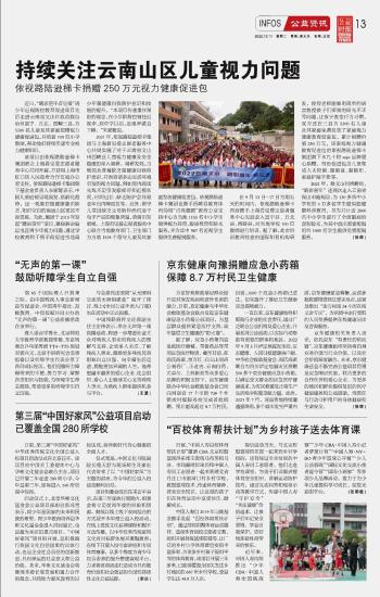 持续关注云南山区儿童视力问题 依视路陆逊梯卡捐赠250万元视力健康促进包