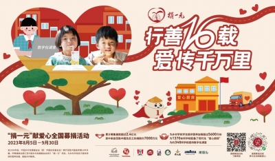 在满载活力的盛夏,百胜中国旗舰公益项目“捐一元”第16年爱心季再度开启。从2023年8月5日-9月30日,该项目邀请全社会的爱心人士共同参与这场致力于关爱乡村儿童的活动,一起随手献爱心、快乐做公益。 2008年,百胜中国携手中国乡村发展基金会(原中国扶贫基金会)发起“捐一元”公益项目,至今已经走过16个年头。16年锐意创新、持续深耕,“捐一元”已形成一套包含“营养加餐、爱心厨房、营养知识宣教、数字化课堂”四大模块,构建了“营养支持+精准扶智”双管齐下的体系,守护乡村儿童的成长之路。这棵爱心之树现已繁花似锦。 2023年,“捐一元”在点餐随餐捐、在线平台募捐等基础上,推出系列新的方式,包括专属小程序“捐一元·月捐月爱”,多品牌爱心套餐,以及结合减碳环保的活动等,以推动更多人群以更多样化的方式参与其中。 “捐一元·月捐月爱” 小程序上线 在“捐一元”16周年之际,百胜中国和中国乡村发展基金会共同推出“捐一元·月捐月爱”小程序,旨在创建一个公益大本营,让公众能以更加持久和便捷地方式参与公益活动。小程序中设有多种互动环节,包括月捐组队、每日公益答题、爱心留言等,参与者可以通过积分兑换公益福利,以及获得不同等级的荣誉证书。此外,通过小程序的“点亮爱心厨房”功能,用户可通过捐款来点亮爱心厨房受益地图,直观地看到爱心成果和项目的进展。 “捐一元”作为我国发起较早的众筹类公益项目,历经16个春秋,助推和见证了公众公益理念从“ 是少数人的专利”到“小额捐赠,人人可参与”的转变。现在,推出月捐小程序,期待再次见证公众公益理念从“单次捐赠”到“点滴持续捐助”的进步。“好的公益始于善意,但长于创新,需要持之以恒才能真正推动改变。”百胜中国首席执行官屈翠容(Joey Wat)强调,“作为一家负责任的企业,百胜中国将始终秉持‘仁心正行’的价值观,勇于担当,积极回馈社会。” 可持续的举措 加持“捐一元” 近年来,随着绿色低碳的生活方式越来越深入人心,百胜中国在“捐一元”活动中也融入了绿色环保元素。每年“捐一元”活动期间,百胜中国全国各市场行都会组织起琳琅满目的公益市集,一边爱心义卖为“捐一元”筹款,一边赋予闲置物品新的生命,献爱心做环保两不误。 今年,百胜中国还在内部推出“健步捐一元”,倡导员工通过健步走、低碳打卡等行为捐爱心支持“捐一元”。与此同时,百胜中国旗下肯德基品牌正在积极探索将咖啡渣经环保回收循环处理转化为爱心善款支持“捐一元”,赋予项目更多可持续发展的内涵。 百胜中国首席公共事务官王立志(Alice Wang)分享说:“捐一元16年,公益形式在不断创新,但公开、透明、人人可参与的基本原则始终不变。普通人也许做不了改变世界的壮举,但在捐一元,动动手指就能释放爱意。小额随手捐,使得公益变得触手可及。” 在过去16年里,百胜中国旗下各品牌和40万员工一直是参与“捐一元”的重要力量。从最初的餐厅劝捐,到数字化点餐时代的点餐随餐捐,百胜中国依托遍布全国的餐厅网络和庞大的数字化系统,凝聚起了千千万万的爱心。今年,在点餐随餐捐之外,肯德基、必胜客、塔可钟、LAVAZZA(拉瓦萨)四个品牌推出了“捐一元”爱心套餐:顾客每购买一份爱心套餐,品牌就将捐赠一元至“捐一元”项目。小肥羊、黄记煌则将通过餐厅劝捐的形式,向顾客介绍“捐一元”并发出献爱心邀约。 百胜中国的40多万员工,每年都会在“捐一元”活动季中展现满满的公益热情。每年“捐一元”开启的8月也已成为百胜中国员工的“公益月”,带动亲友一起捐,组织公益市集、爱心义卖……创意做公益、快乐献爱心,已成为百胜中国一种传承性的企业文化。 “捐一元”邀您 共同守护乡村儿童 从2008年到2023年6月底,“捐一元”已带动1.4亿多人次参与,累计募集善款超过2.4亿元,为乡村儿童提供超过5600万份鸡蛋牛奶营养加餐,为1380余所乡村学校配备现代化的爱心厨房设备,并在约550所乡村学校开展起了进行编程教育的“数字化课堂”。花季之年的“捐一元”,仍走在守护乡村儿童成长的路上。 中国乡村发展基金会副秘书长秦伟表示:“投资儿童营养,就是投资未来。改善学生营养是阻断贫困代际传递的重要举措。我会与百胜中国连续第16年合作开展‘捐一元·献爱心·送营养’活动,从脱贫攻坚转到乡村振兴,初心不变,始终坚持探索项目可持续发展道路。未来,也将通过不断丰富、优化项目内容,推动人人公益,形成更大社会效益,助力乡村振兴。” 今年,是巩固拓展脱贫攻坚成果同乡村振兴有效衔接的关键之年,城乡儿童在营养健康、数字化教育等方面仍存在较为显著的差距。因此,“捐一元”仍需要更多爱心力量的注入,为乡村儿童提供持续且有针对性的帮助。正值“捐一元”花季之年,百胜中国与中国乡村发展基金会邀各方一起守护祖国的花朵:每捐赠约3元,就可为一名乡村儿童提供一份鸡蛋牛奶营养加餐;每天省下一元钱,一月约30元,可以为一名乡村儿童提供约两周的营养加餐;坚持一年,可为一名乡村儿童提供约一个学期的营养加餐,累计约6万元就可以为乡村学校提供现代化爱心厨房设备,也可以提供数字化课堂及编程培训。百胜中国与中国乡村发展基金会号召各方一起参与,在守护乡村儿童成长的行动中,把公益变成持续