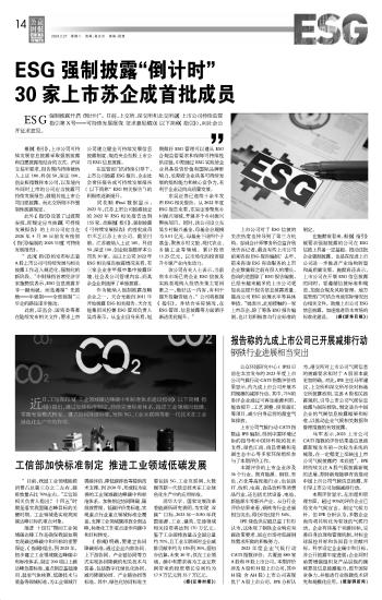 ESG强制披露“倒计时” 30家上市苏企成首批成员