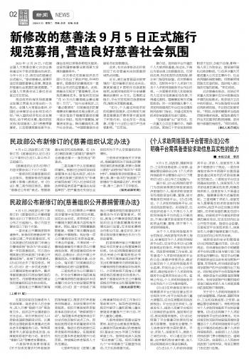 新修改的 法9月5日正式施行规范募捐,营造良好 社会氛围