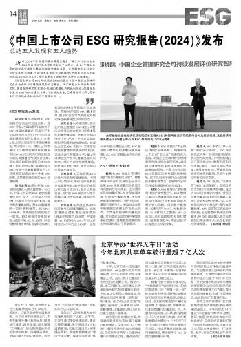 《中国上市公司ESG研究报告(2024)》发布总结五大发现和五大趋势