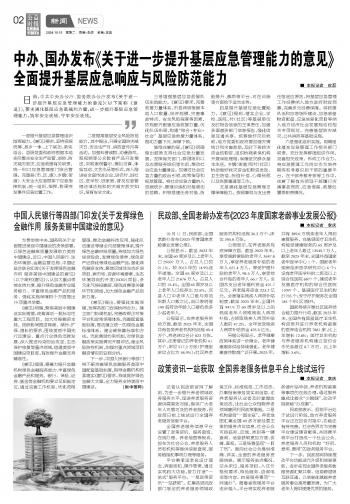 中办、国办发布《关于进一步提升基层应急管理能力的意见》全面提升基层应急响应与风险防范能力