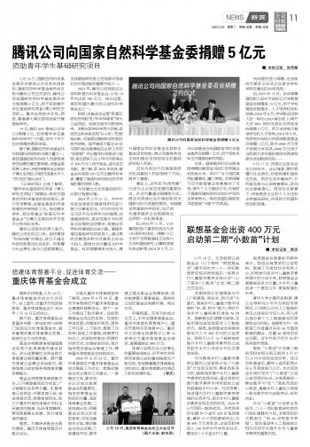 腾讯公司向国家自然科学基金委捐赠5亿元
