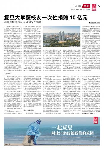 复旦大学获校友一次性捐赠10亿元