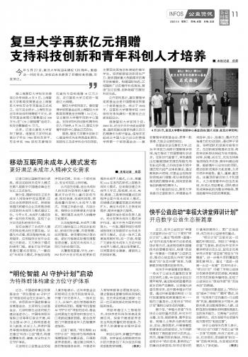 复旦大学再获亿元捐赠支持科技创新和青年科创人才培养