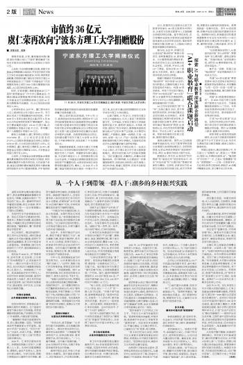 市值约36亿元 虞仁荣再次向宁波东方理工大学捐赠股份